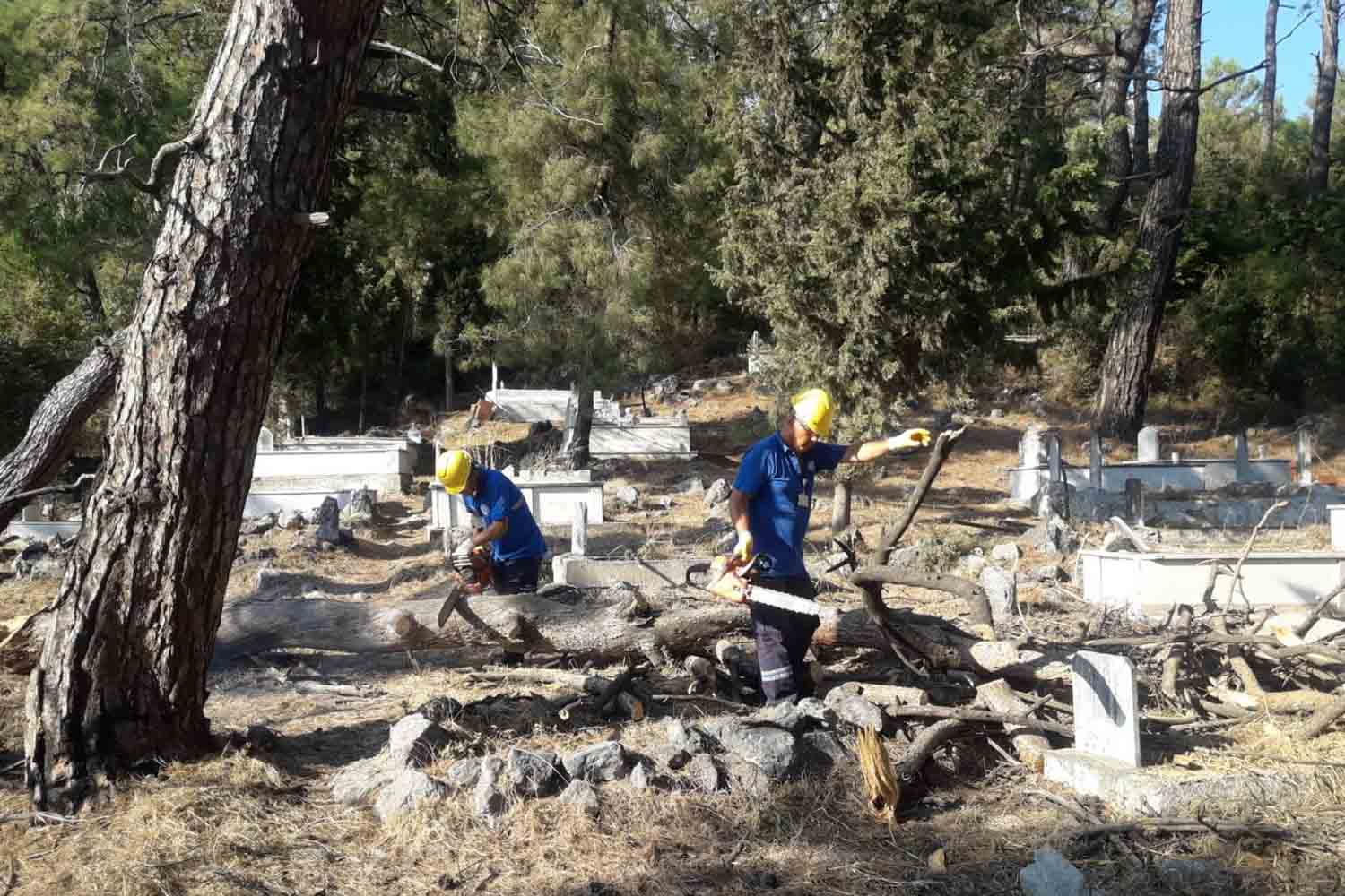 Muğla Büyükşehir Belediyesi park, mezarlık gibi alanlarda gerçekleştirdiği budama, temizlik ve bakım çalışmalarından...
