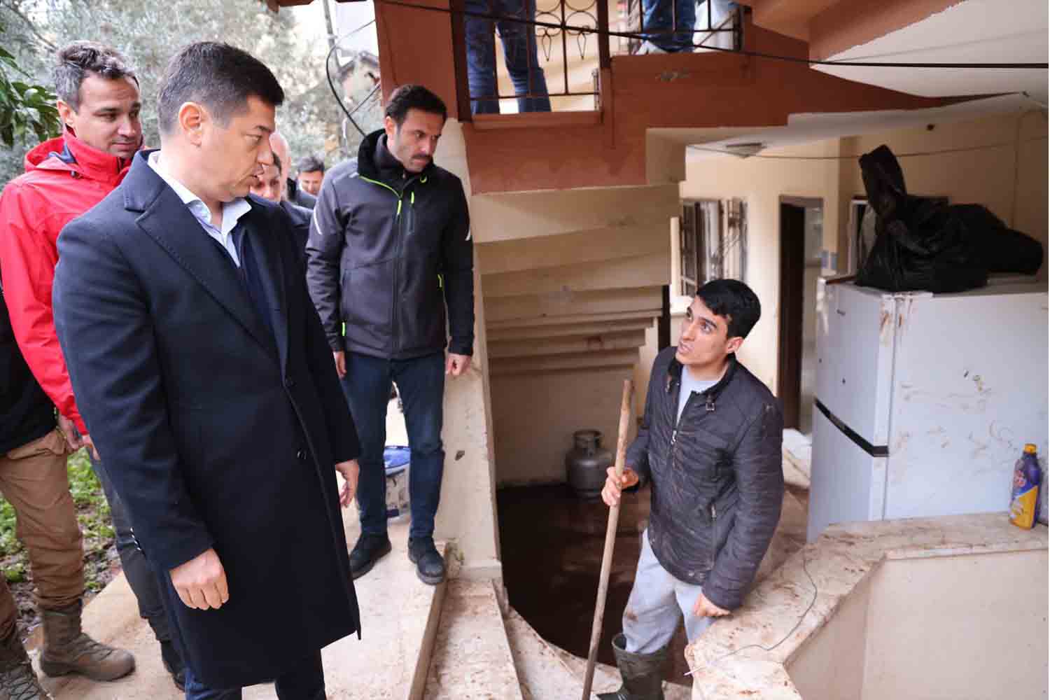Marmaris’te etkili olan şiddetli sağanak yağışın ardından meydana gelen su taşkınlarından etkilenen mahalleleri ziyaret eden AK Parti...