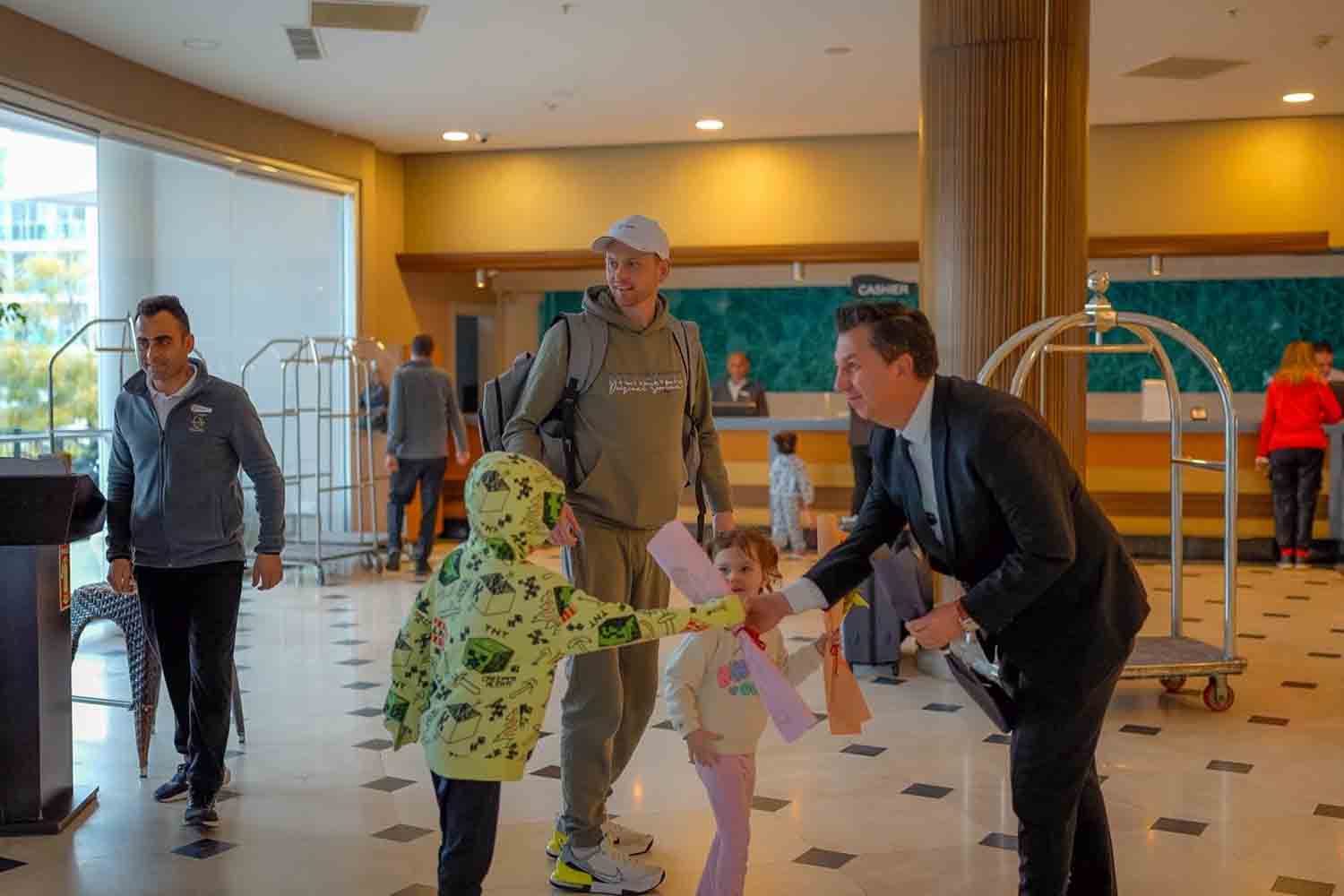 Marmaris Esnaf ve Sanatkarlar Odası Başkanı Mehmet AYYILDIZ, Marmaris e tatil için gelen ilk İngiliz turist kafilesini çi&cced...